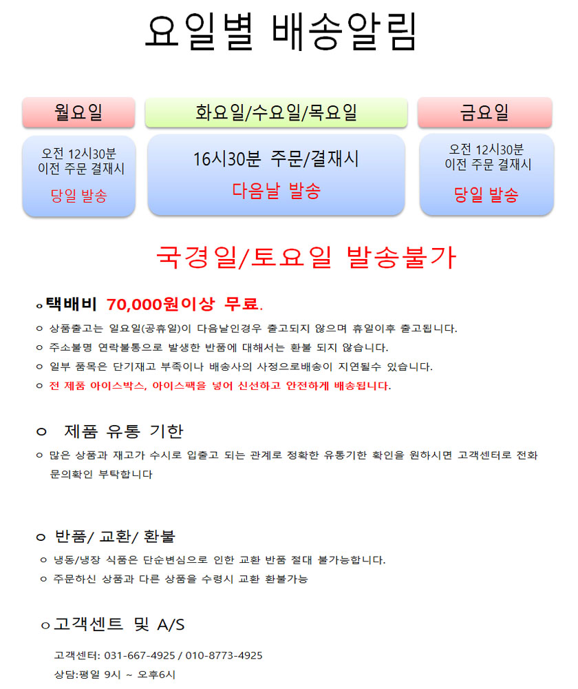 빠른 발송을 위해 당일 발송제품 운영(13시30분마감)