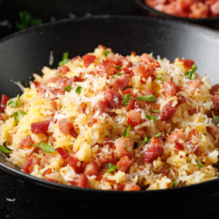 요리에 쉽게 사용할 수 있게 자연스러운 모양으로 잘라낸 정통 삼겹 베이컨